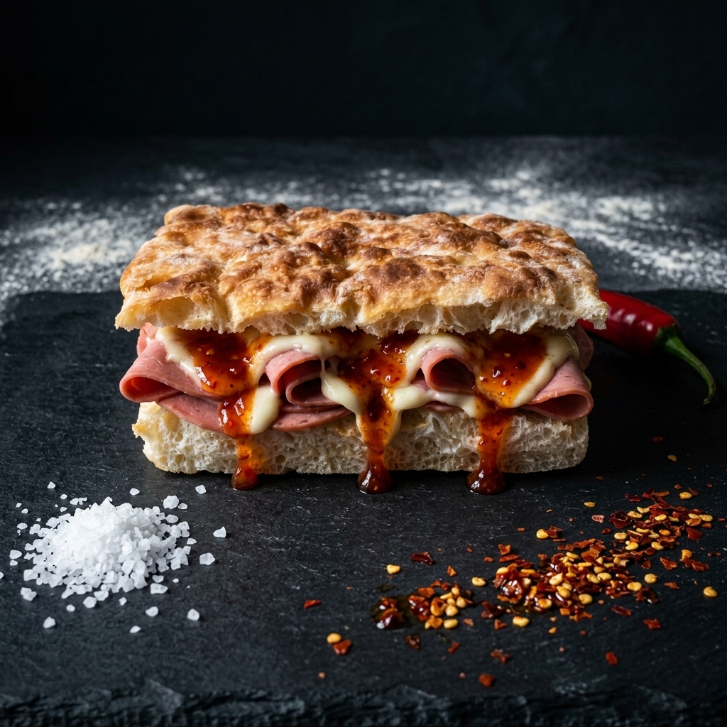 DANA JAMBON & MOZARELLA & PİRİ PİRİ SOSLU FOCACCIA SANDVİÇ
