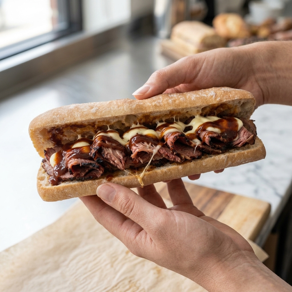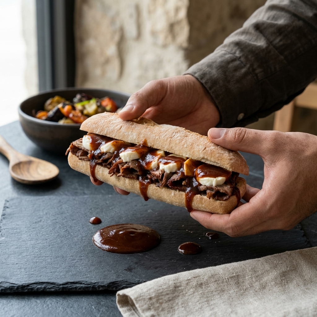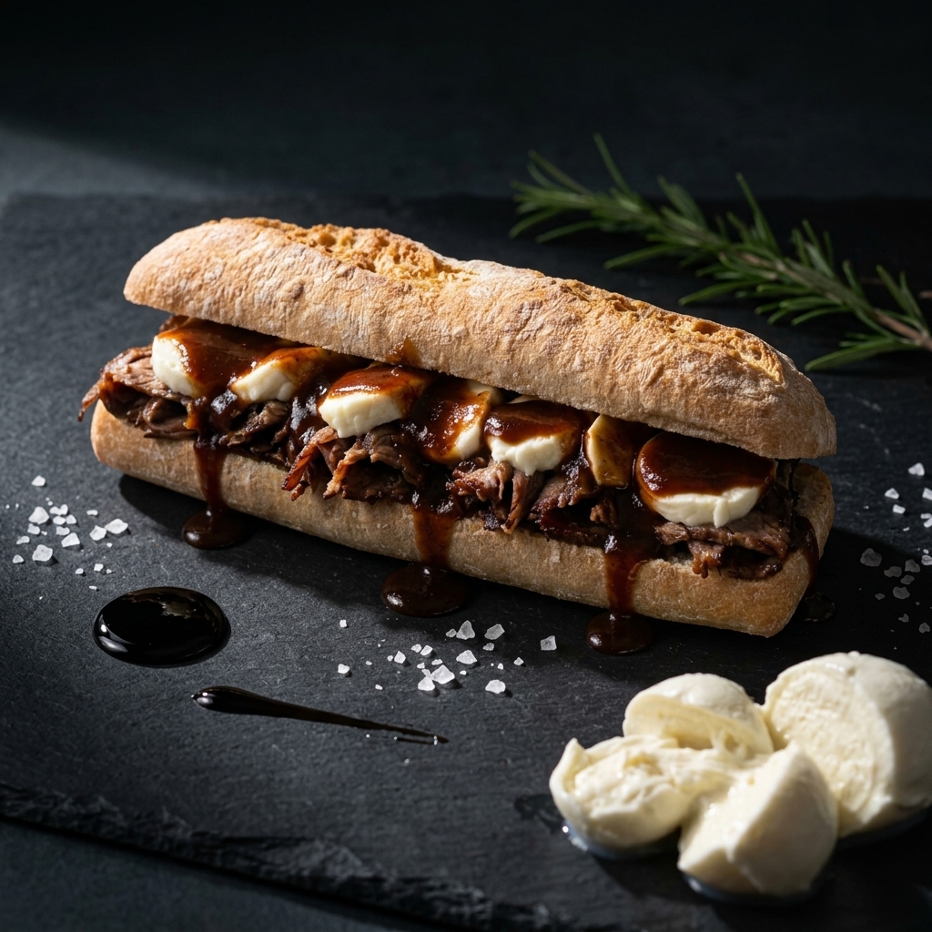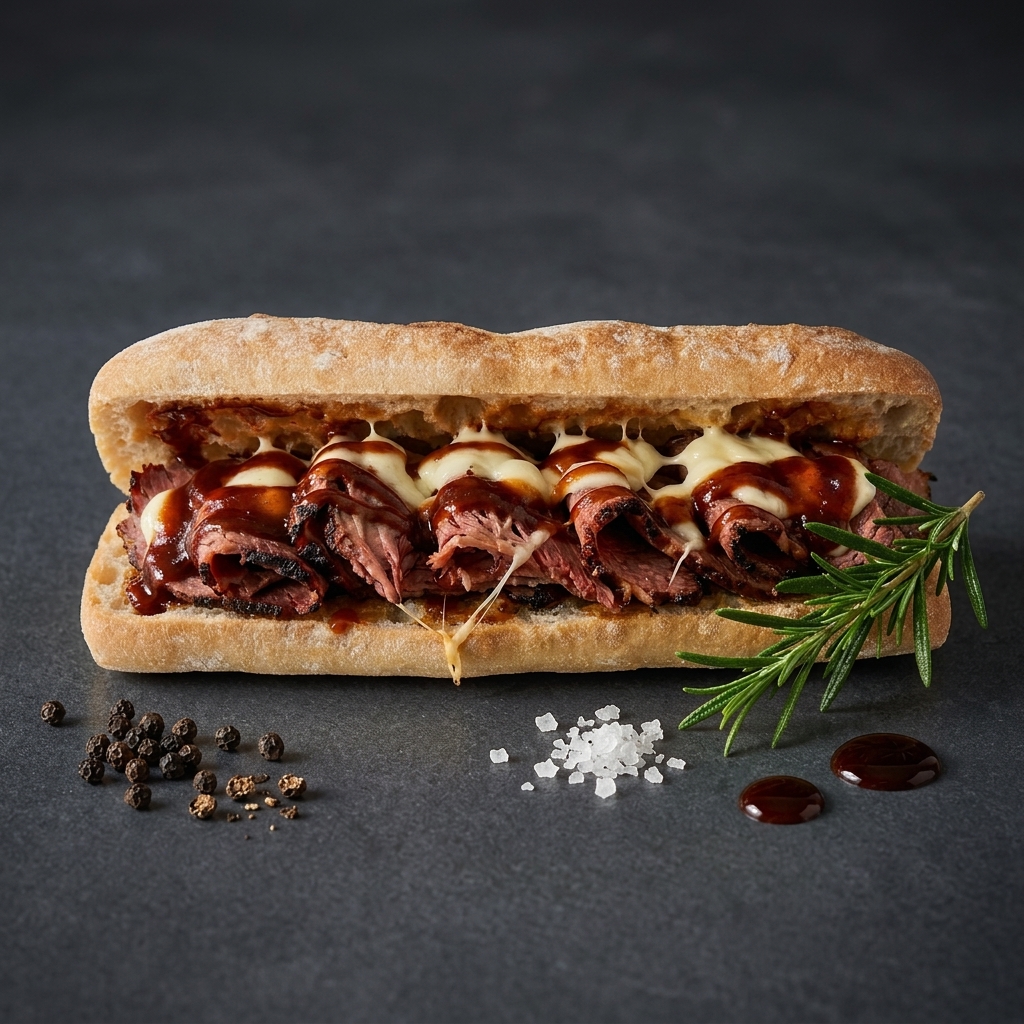 FÜME KABURGALI & MOZARELLA & BBQ SOSLU CİABATA SANDVİÇ