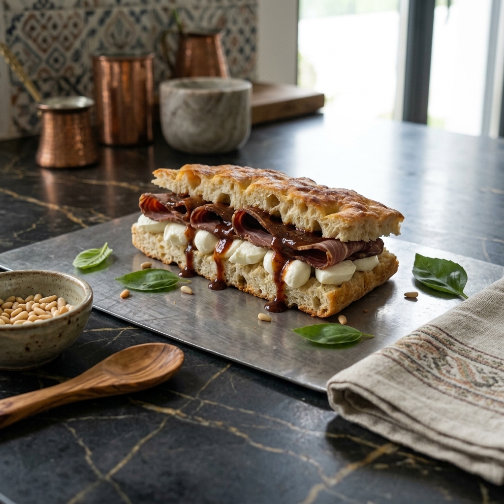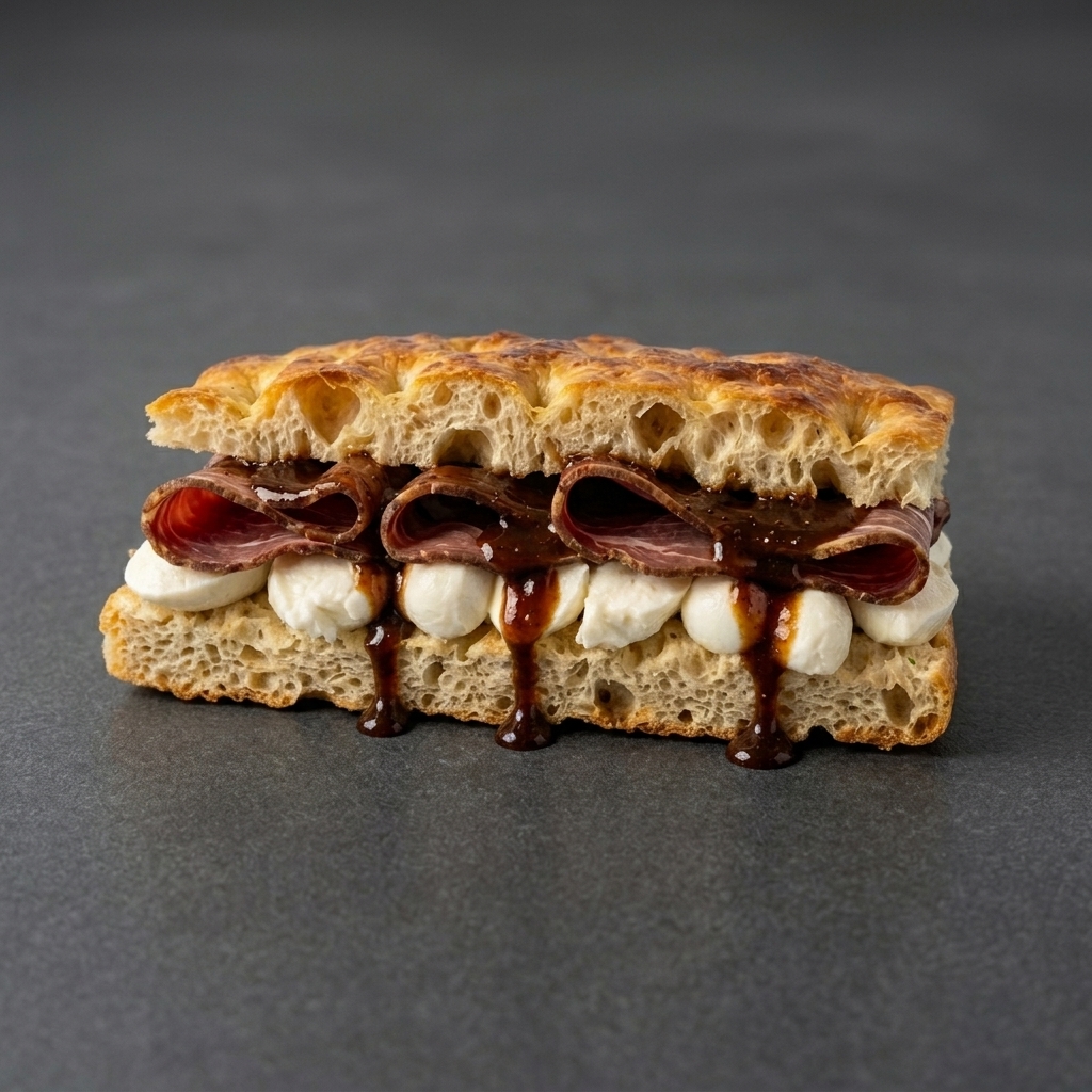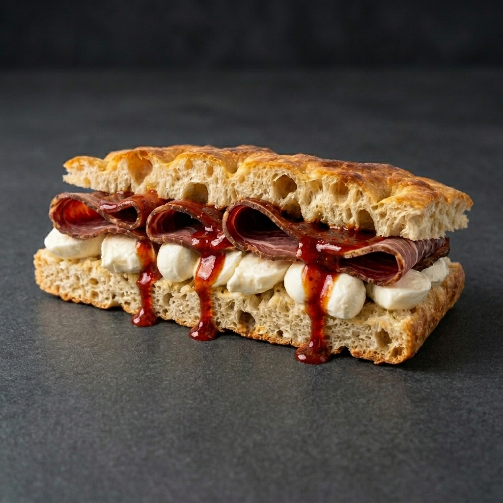 FÜME KABURGALI & MOZARELLA & BBQ SOSLU FOCACCIA SANDVİÇ