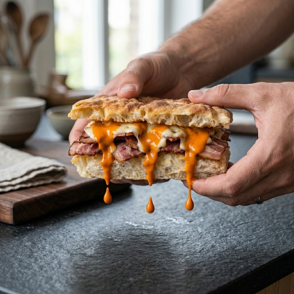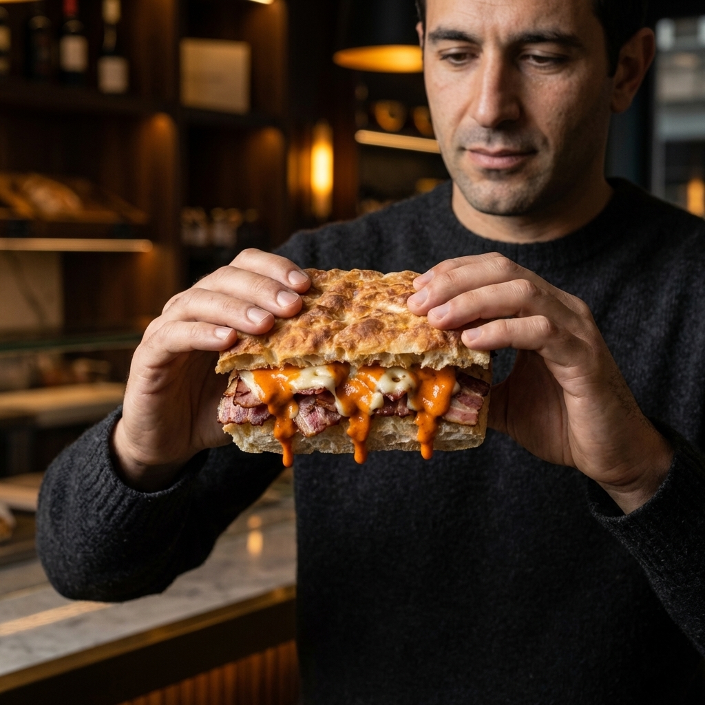 FÜME KABURGALI & MOZARELLA & BBQ SOSLU FOCACCIA SANDVİÇ
